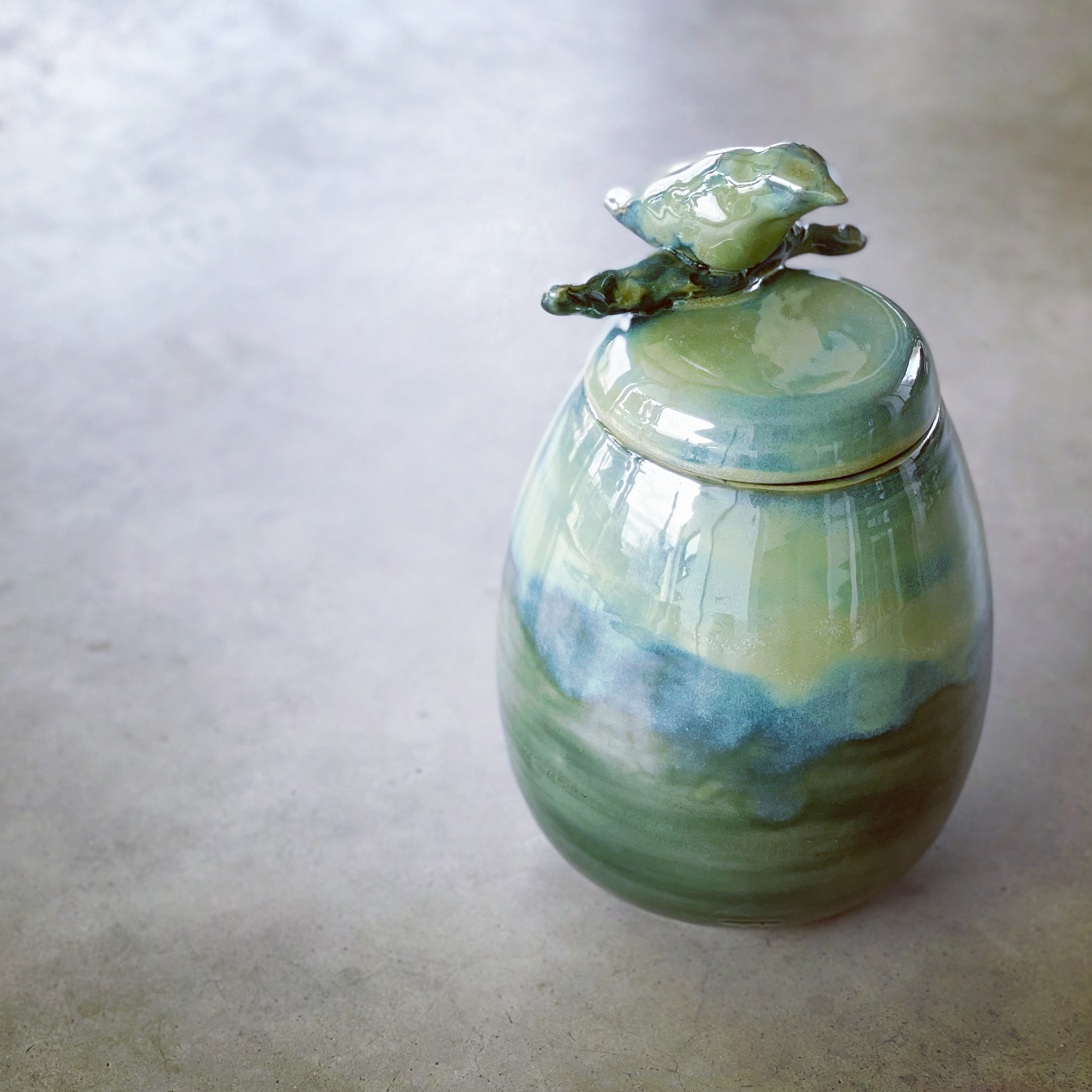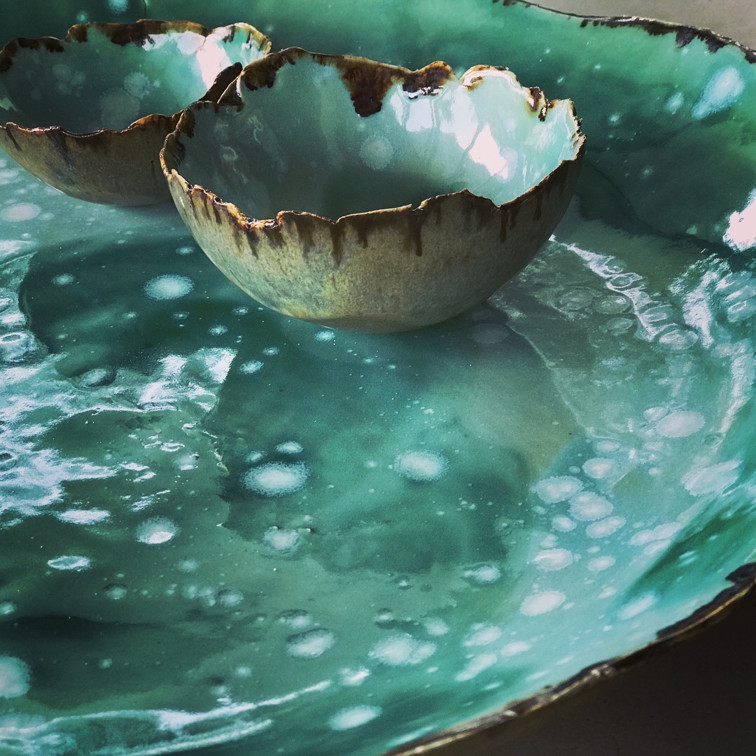 Voor mij komt in de keramiek mijn opleiding en werkervaring samen. Tijdens mijn opleiding op de TeHeTex en de Academie voor Industriële vormgeving ontstond de basis voor materiaalkennis en verhoudingen. En mijn werk als styliste leerde me mijn gevoel voor kleur en ruimte. Dit pas ik nu dagelijks toe waarbij ik steeds de grenzen van de klei en het glazuren opzoek en verleg.